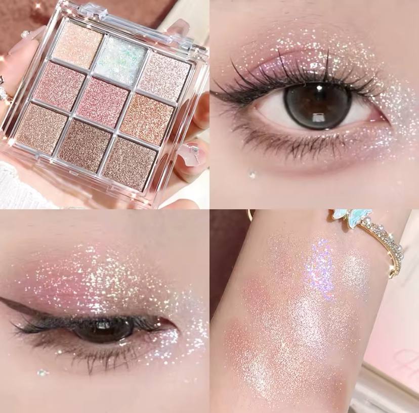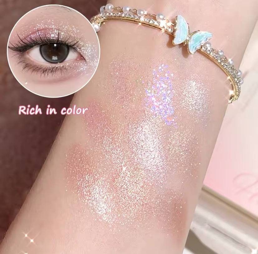 Palette de fards à paupière avec des paillettes fines nacrées pour une sublime mise en beauté féminine. Idéale pour les soirées, ces fards à paupière résistent à l'eau et font briller les yeux des femmes. Offrez-vous un regard féminin et étincelant avec cette palette.
